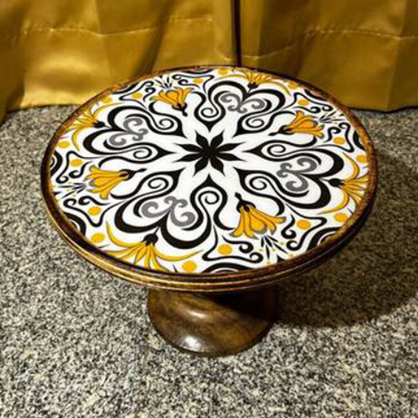 Finish: Natural interior, floral-patterned epoxy exterior